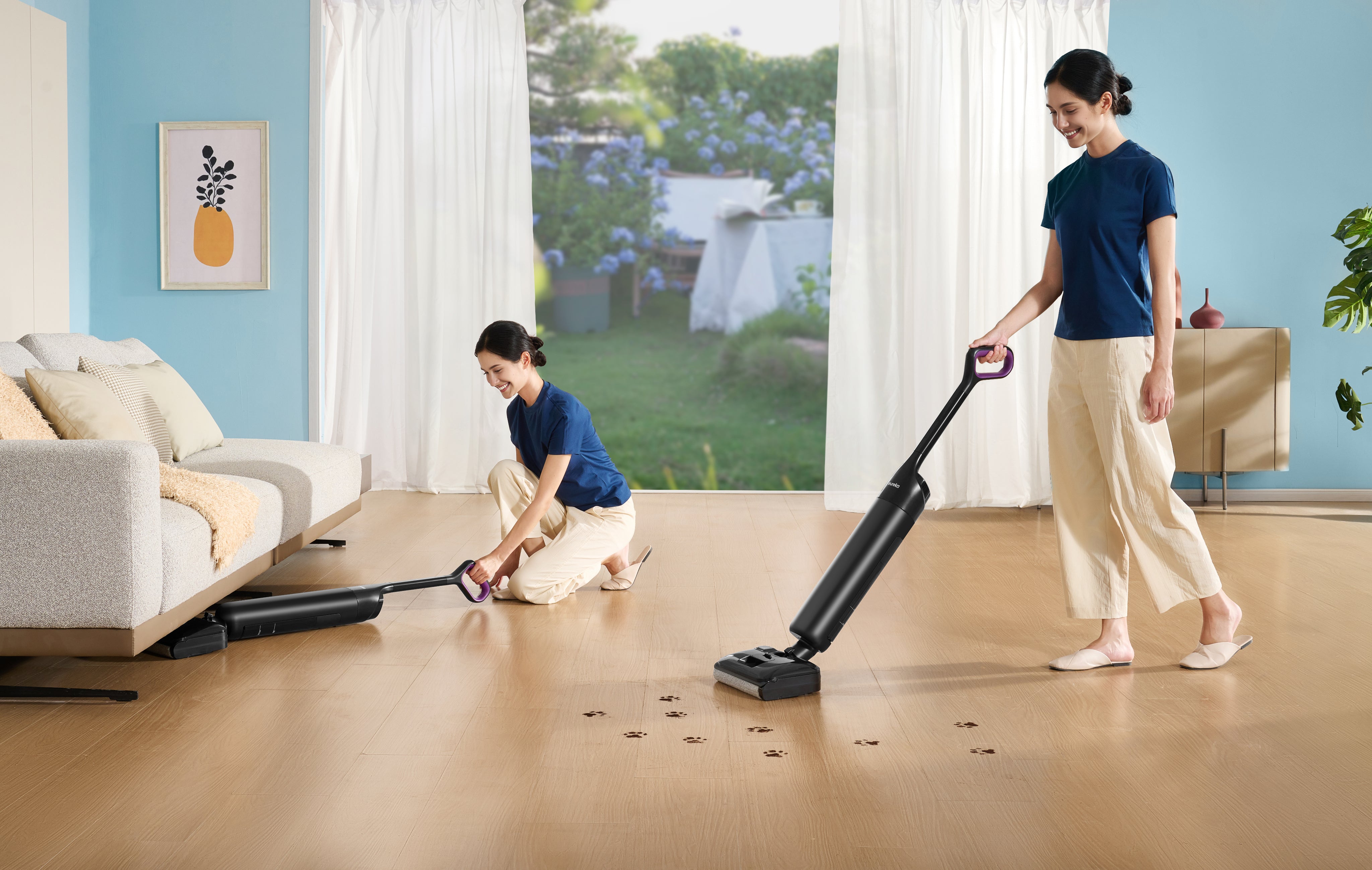 Grâce à sa technologie de moteur BLDC avancée, le NEW460, compact et léger, offre des performances de nettoyage stables et puissantes du début à la fin, surpassant les systèmes d'entretien des sols traditionnels. *Comparaison avec le NEW400. Les données fournies sont basées sur des tests réalisés par le laboratoire Midea et les performances réelles peuvent varier.